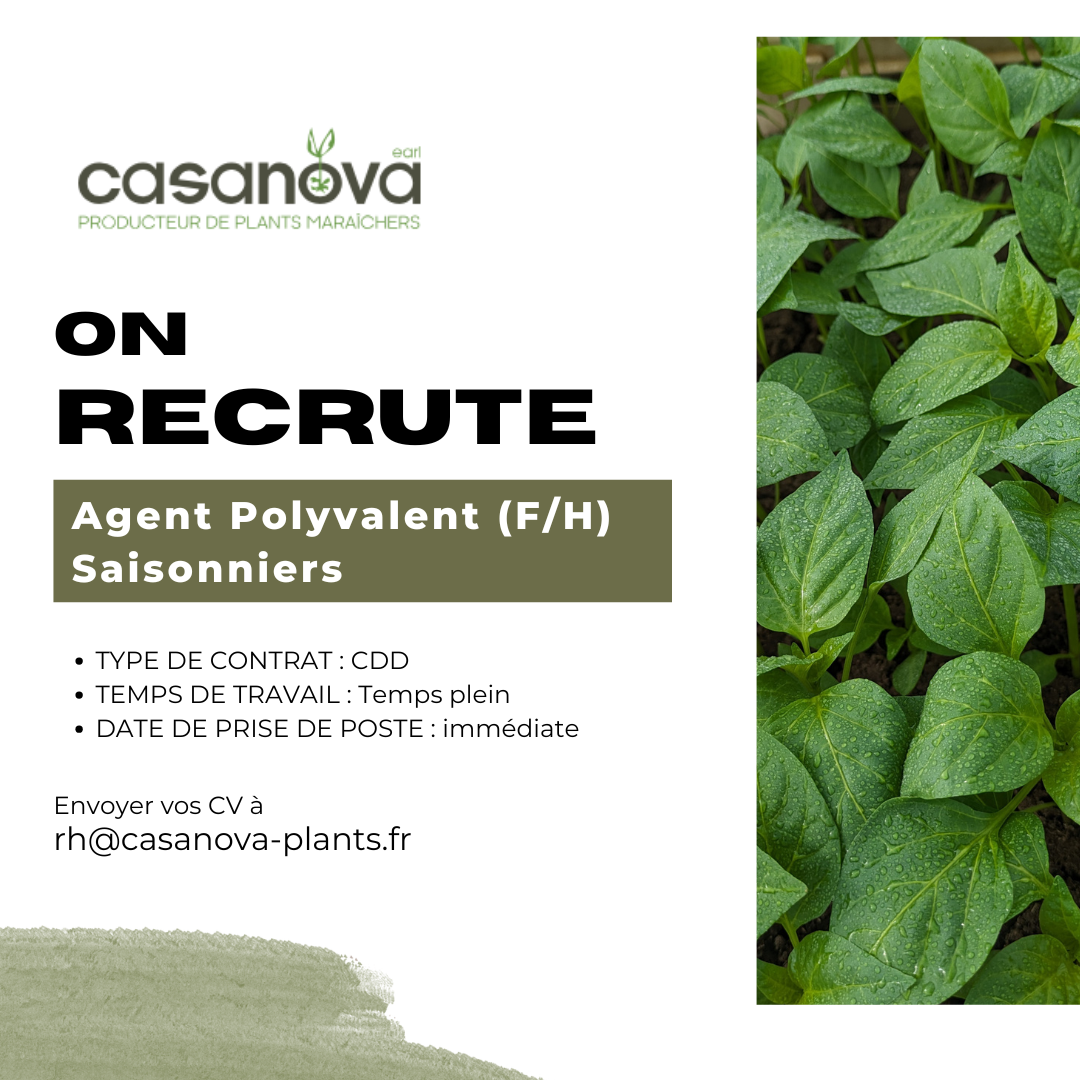 Contact : Pour postuler, merci d’envoyer votre CV et une lettre de motivation à l’adresse suivante : rh@casanova-plants.fr